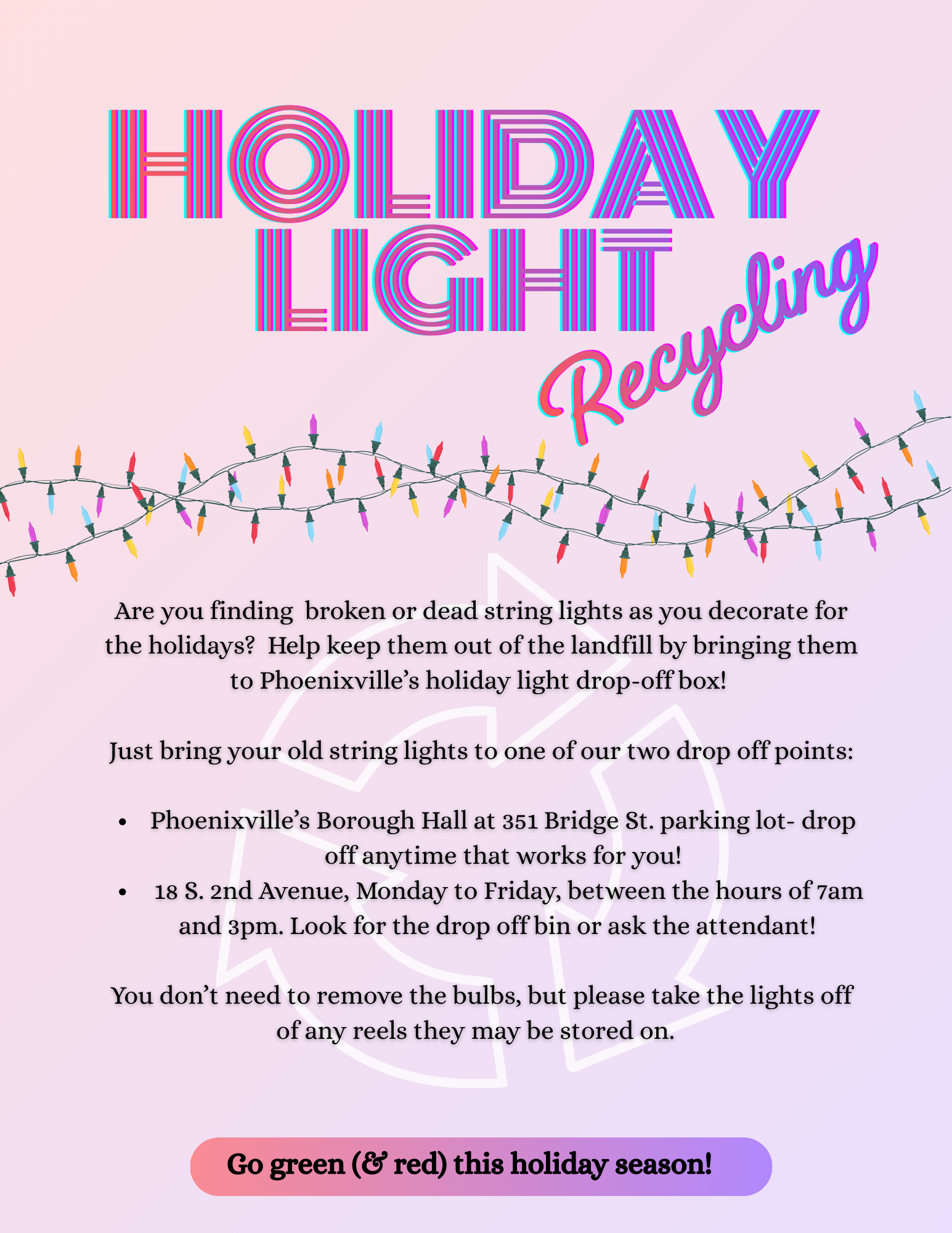 The holiday season is here, but the lights don't last forever! String lights don't belong in your household recycling, but don't have to go to the landfill. Let the Borough help! (more info)